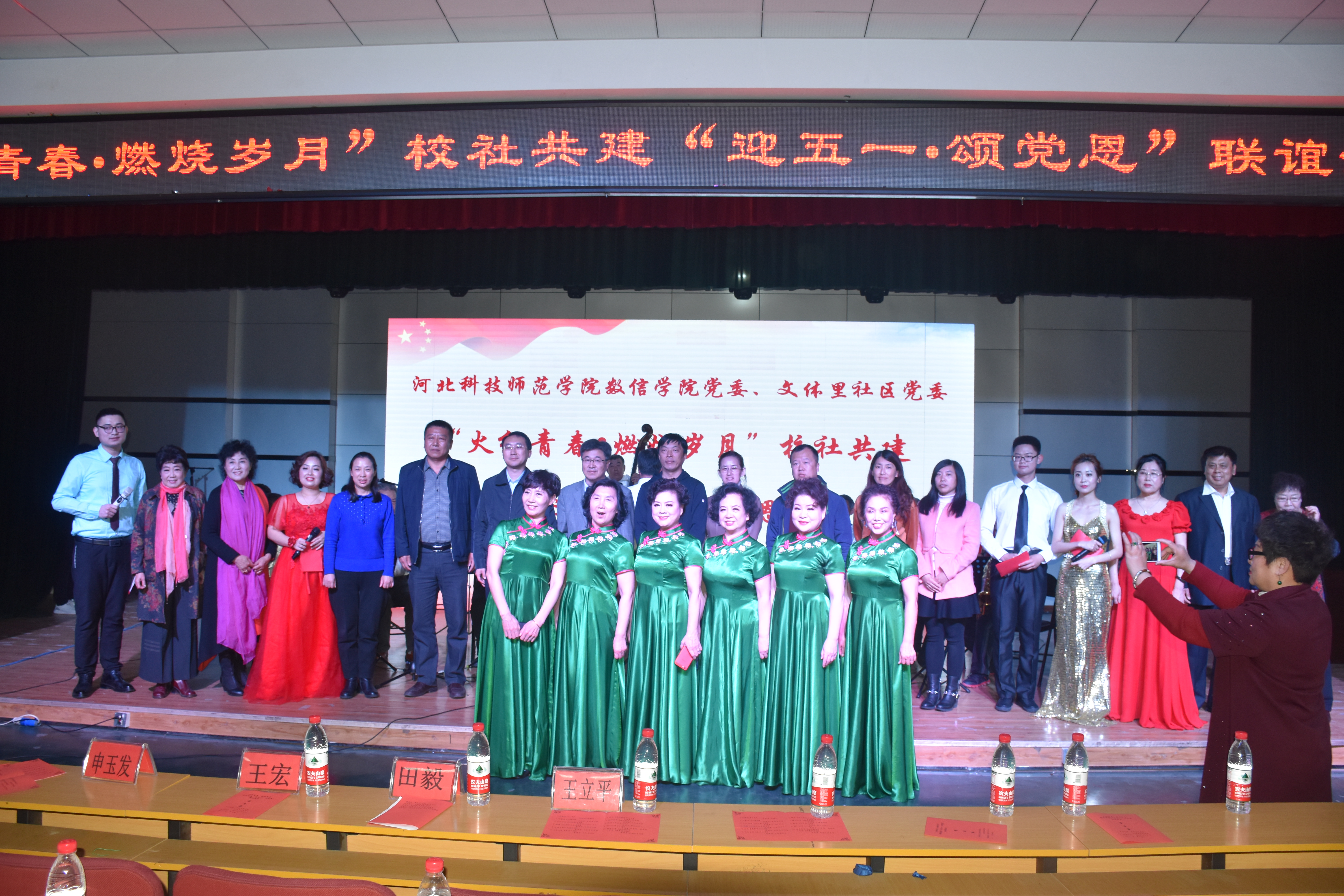根据中共白塔岭街道工作委员会海白工字(2018)1号文件,“关于召开高校片区联合党委区域化党建工作推进会议的通知”,为了进一步贯彻党的十九大精神,深入实施“开放带动、服务互动、管理联动、文化驱动”发展战略。4月21日下午2:30在河北科技师范学院多功能厅,bat365官网登录入口党委与白塔岭街道文体里社区党委,联合举办了以“高校社区同携手,共驻共建共发展”为主题的“火红青春•燃烧岁月“校社共建,迎五一,颂党恩”联谊活动。河北科技师范学院党委组织部部长、白塔岭街道党工委书记、bat365官网登录入口领导班子成员、学生工作人员、白塔岭街道办事处主任、文体里社区党委书记及社区居民、高校师生等近400人参加了联谊活动。
