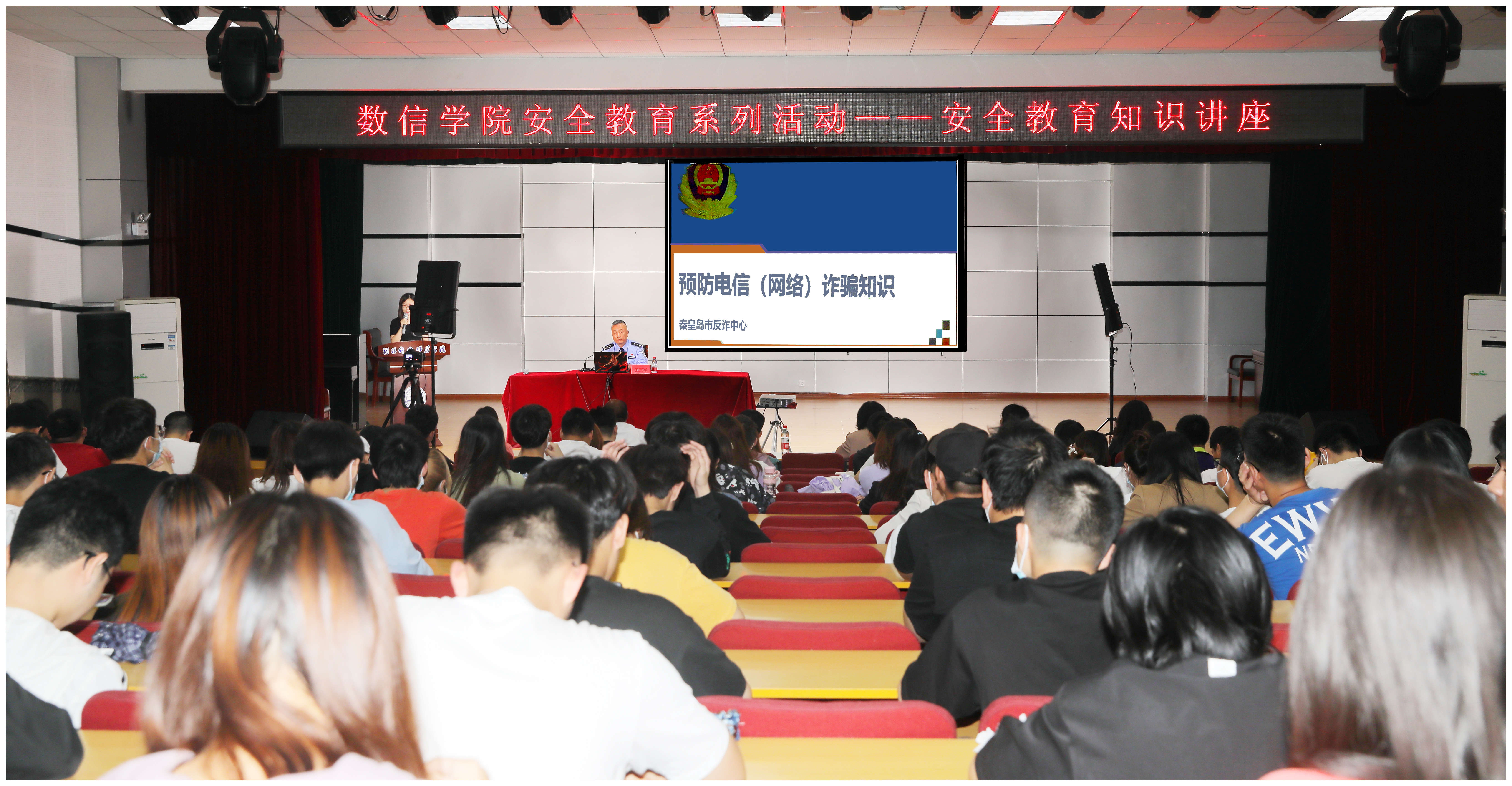为进一步增强学生网络安全防范意识,推动校园安全文化建设,6月9日晚7点,数信学院于逸夫楼一楼多媒体功能厅开展第一届“共建网络安全,共享网络文明”安全教育系列活动——网络安全教育讲座。本次讲座邀请秦皇岛市海港公安分局燕园派出所社区王宝军警官作为主讲人,面向bat365官网登录入口全体学生作网络安全教育知识讲座,bat365官网登录入口党委副书记、分团委书记、学工班主任、辅导员、班主任及各班级学生代表出席活动。