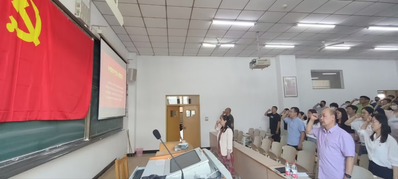 为深入开展学习贯彻习近平新时代中国特色社会主义思想主题教育,2023年6月15日下午,bat365官网登录入口全体师生党员于逸夫楼A107教室举行了“重温入党誓词,坚定理想信念”主题党日活动。党委书记申玉发、副书记王伟、副院长吕金凤同志出席了本次活动。