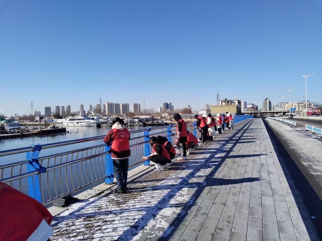 本次活动共有19位支部成员参与,在他们的共同努力下,恢复了护栏原有的干净明亮,用过的脏水也得到了妥善处理。支部成员们的服务热情高涨,不仅为海港区的环境美化贡献了自己的一份力量,也向市民传递了保护环境、热爱家园的正能量。