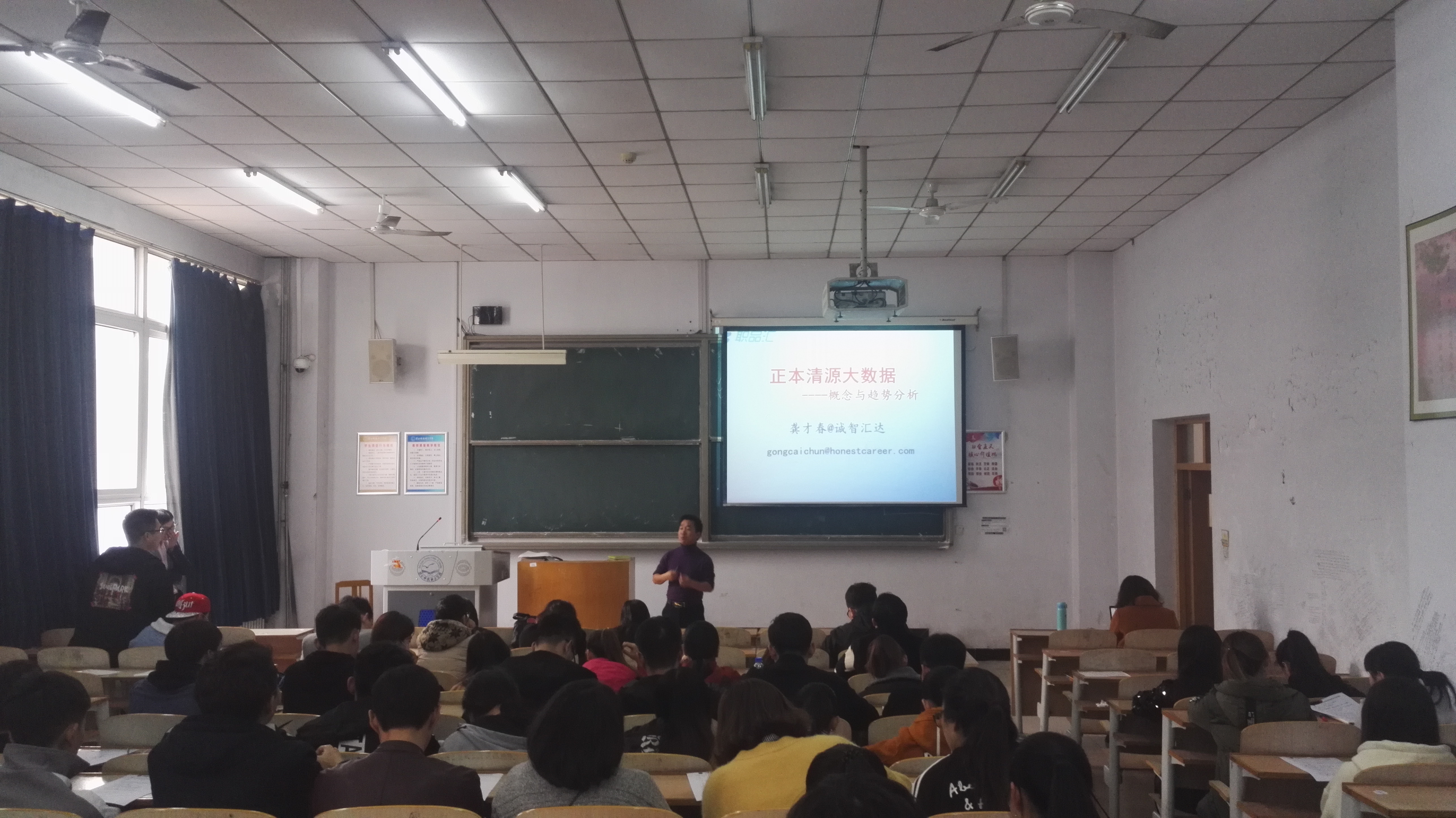 2017年11月2日下午2点,bat365官网登录入口邀请诚智汇达创始人龚才春博士在逸夫楼A107做题为《正本清源大数据-概念与趋势分析》的学术报告。学院2015级计算机科技专业、物联网工程专业学生及学院老师参加了报告会。