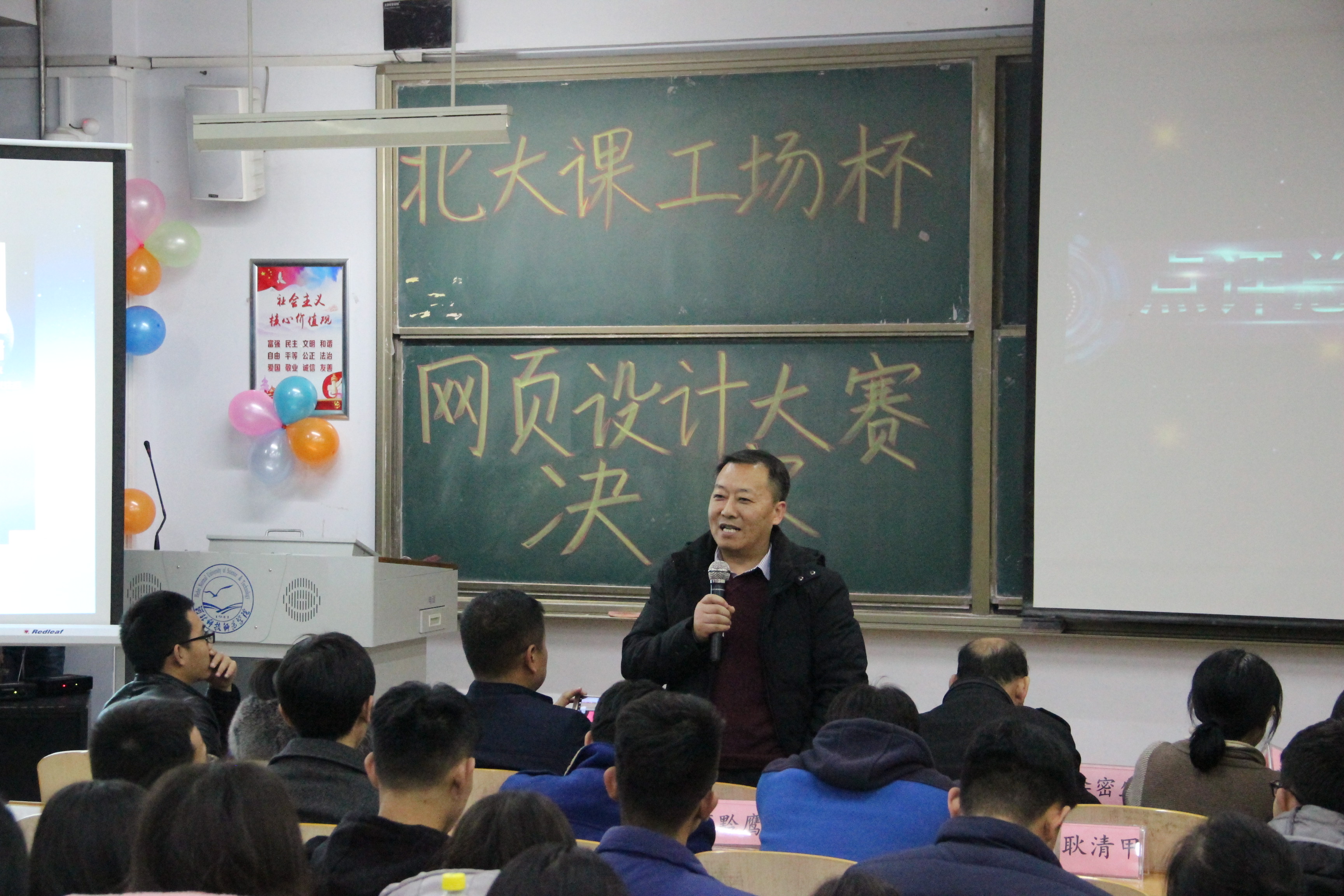 2017年11月24日晚7:00,bat365官网登录入口在秦皇岛校区逸夫楼A309举办了“北大课工场杯”网页设计大赛决赛。大赛由bat365官网登录入口教学工作负责人、网络工程教学部负责人、计算机专业实验室负责人及相关专业教师担任评委,北大课工场企业代表作为嘉宾出席了本次活动。