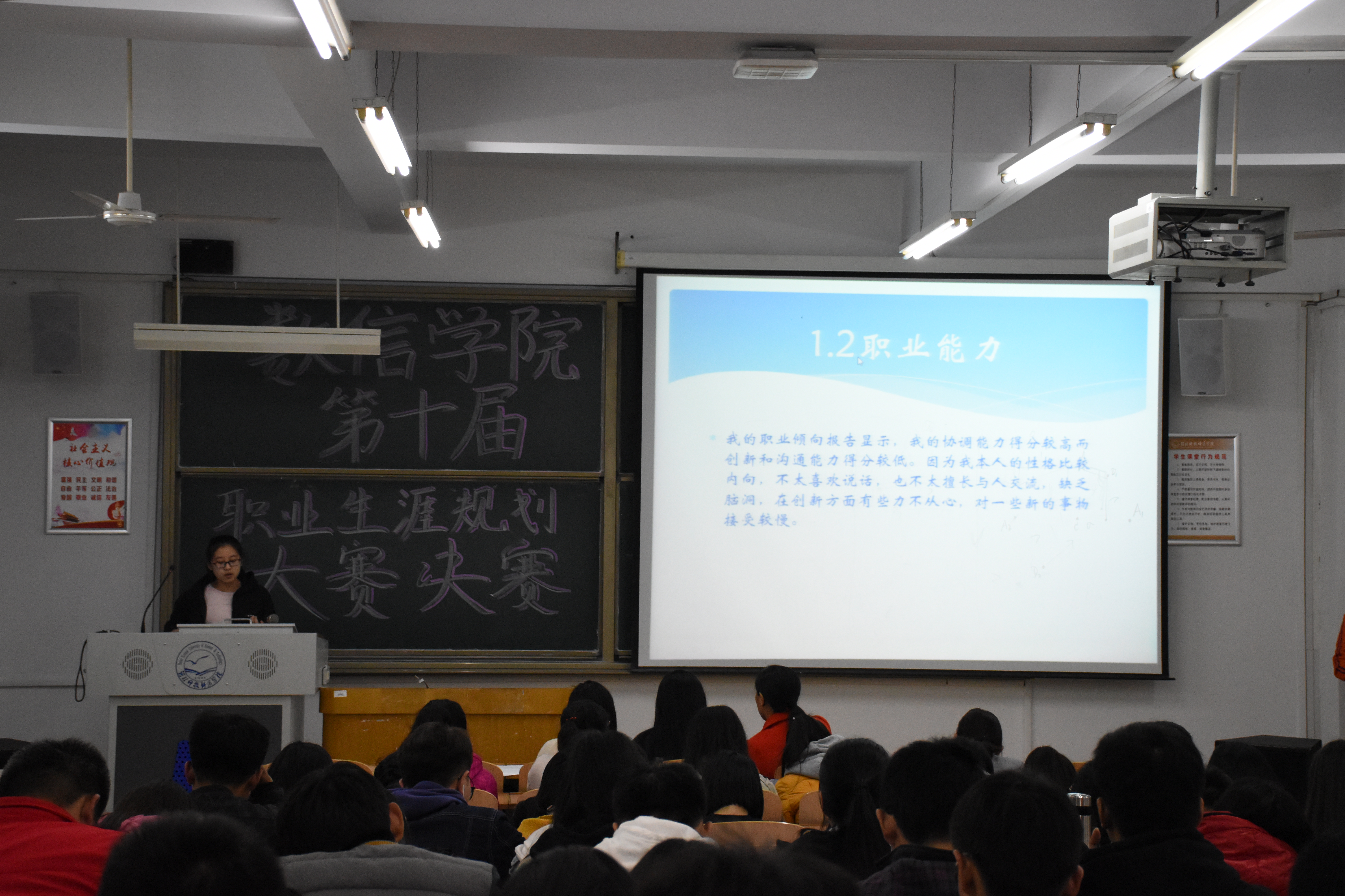 2018年10月31日下午,bat365官网登录入口在逸夫楼A305举办了第十届职业生涯规划大赛决赛。大赛由bat365官网登录入口计算机基础教学部主任、学生工作办公室老师担任评委。经过初赛选拔,10名同学参加了决赛。