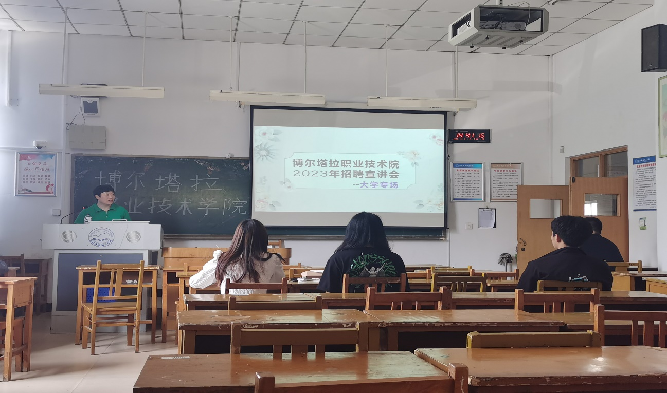 2023年5月16日星期二下午两点半博尔塔拉职业技术学院宣讲会于逸夫楼A108成功举办,同学们积极响应号召,准时到达宣讲会现场参加本次宣讲会。