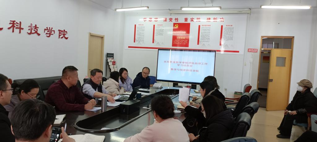 为贯彻落实学校新一轮本科教育教学审核评估工作,2024年1月23日,数 信学院在逸夫楼1001会议室召开本科教育教学审核评估工作学习动员会,学院领导班子成员,各教学部、实验室、党政办公室、教学办公室、学科办公室、学工办及分团委负责人参加了会议,会议由学院行政负责人主持。