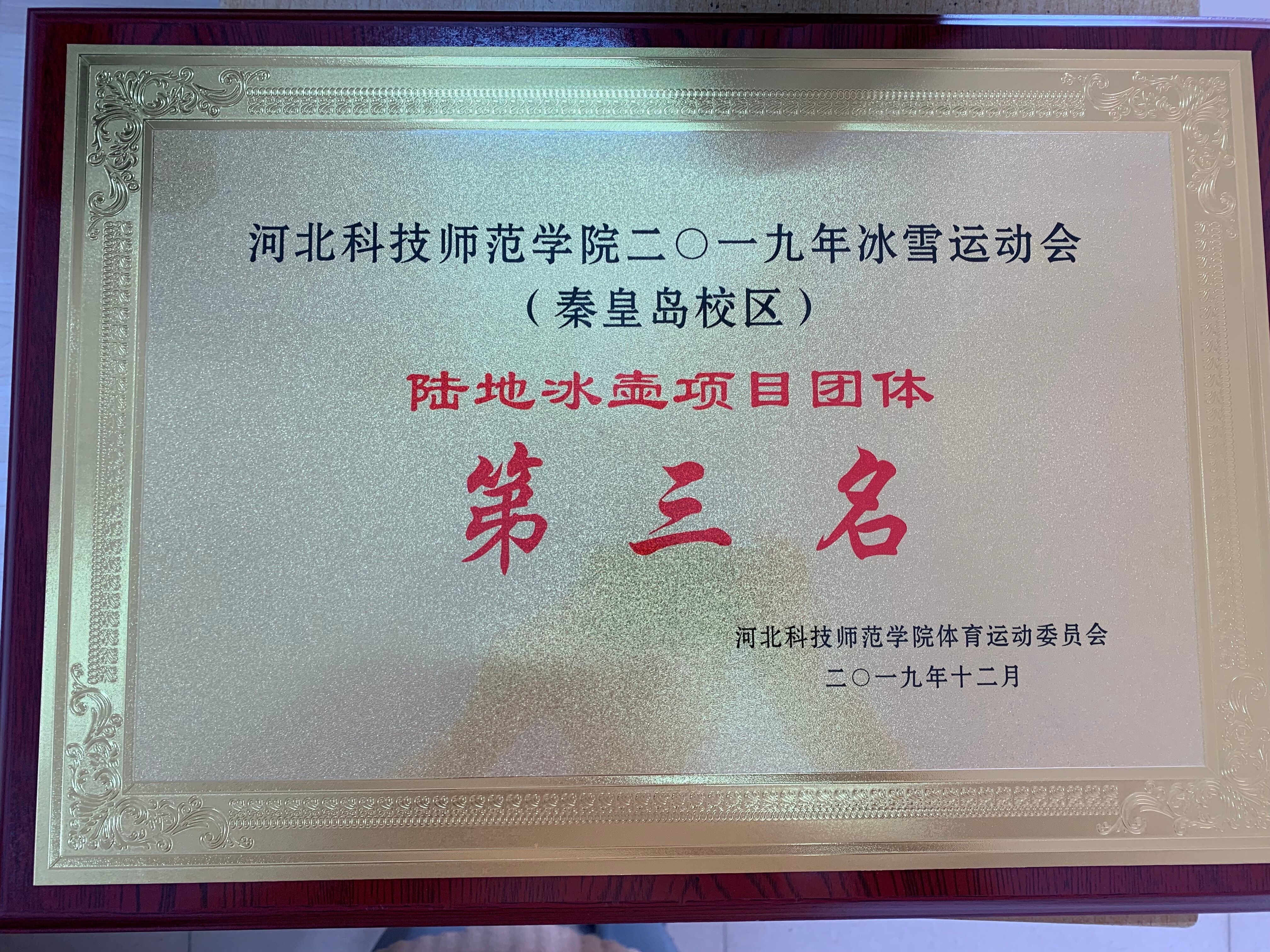 为贯彻落实习近平总书记重要指示和落实省委、省政府关于冰雪运动发展批示精神,喜迎2022北京冬奥会、大力普及冰雪运动。2019年12月5日,学校在秦皇岛校区隆重举办首届冰雪运动会。进一步激发广大师生参与冰雪运动的热情,增强冰雪健身意识、提升身体素质,扩大参与冰雪运动的群众基础,营造全校积极参与冰雪运动的良好氛围。bat365官网登录入口派队在秦皇岛校区参加了学校首届冰雪运动会,陈亚杰、万君霞、梁一凡等16名同学组成了两个代表队代表bat365官网登录入口参加了比赛。冰雪运动会比赛项目有陆上冰壶,100m、200m、400m以及全能轮滑。天气虽然寒冷,但在同学们此起彼伏的加油助威声中,参赛选手全力以赴,最终bat365官网登录入口冰壶二队取得了秦皇岛校区第三名的好成绩,呈现出了bat365官网登录入口学子健康阳光、拼搏进取的新一代青年大学生风采。同时,bat365官网登录入口被学校授予精神文明单位荣誉称号。