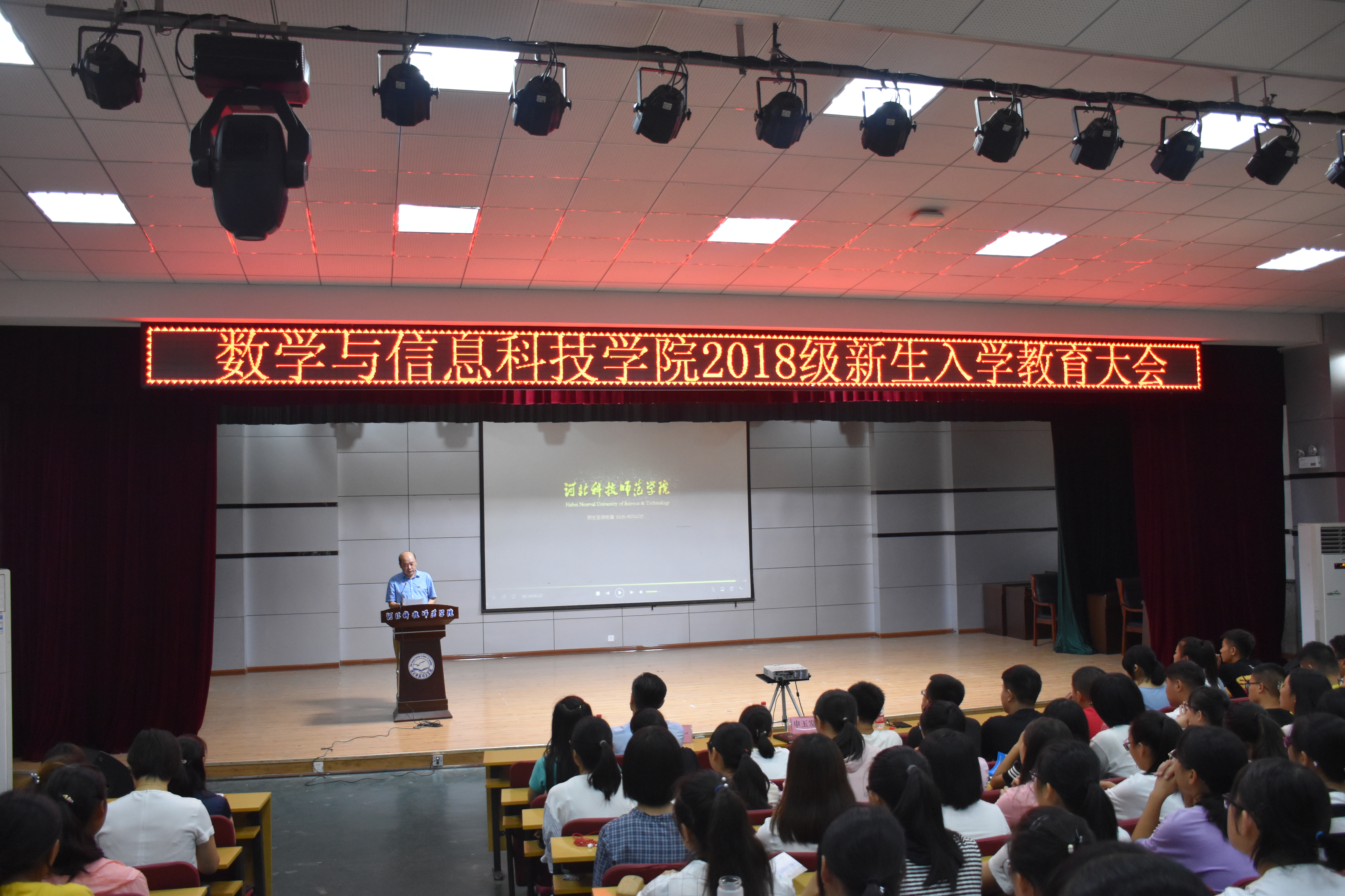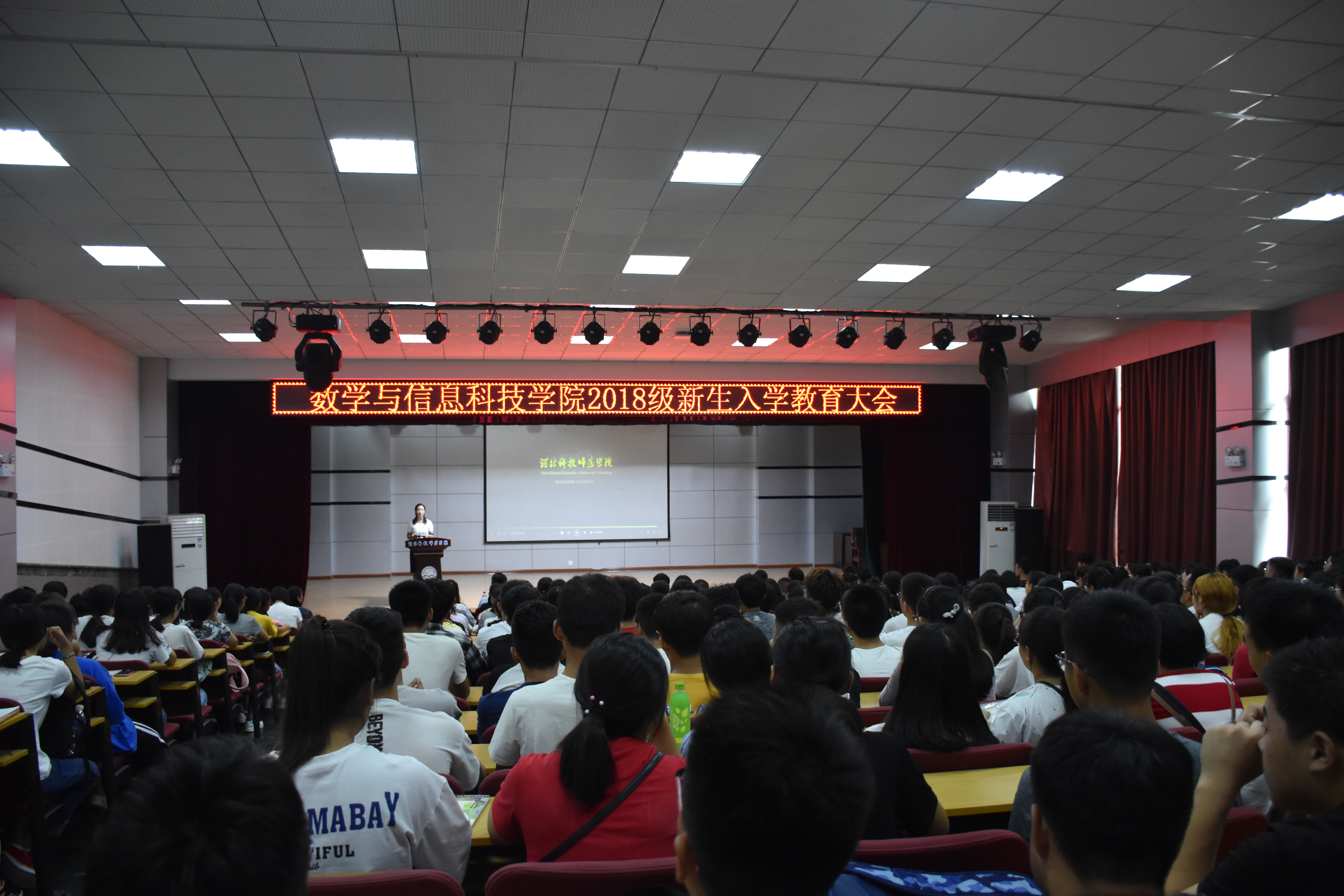2018年9月6日上午,bat365官网登录入口在秦皇岛校区多功能厅举办了2018级新生入学教育大会。学院领导班子成员、办公室教学秘书和学工办老师及新生辅导员出席了新生入学教育大会。