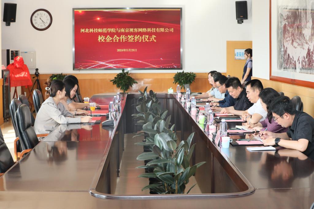 2024年5月28日,我校与南京视客网络科技有限公司举行了校企合作签约暨基地揭牌仪式。学校党委常委、副校长冯瑞银,党委常委、副校长刘荣昌,南京视客网络与科技有限公司副总经理、组织与人力资源部负责人繆继红、眼镜圈运营部业务负责人张丹枫、组织与人力资源部COE朱茜茹出席活动。学校招生就业处处长于明来、教务处副处长孙成振、bat365官网登录入口党委书记杨崇泽、院长赵立强、党委副院长王静参加活动。签约仪式由招生就业处负责同志主持。