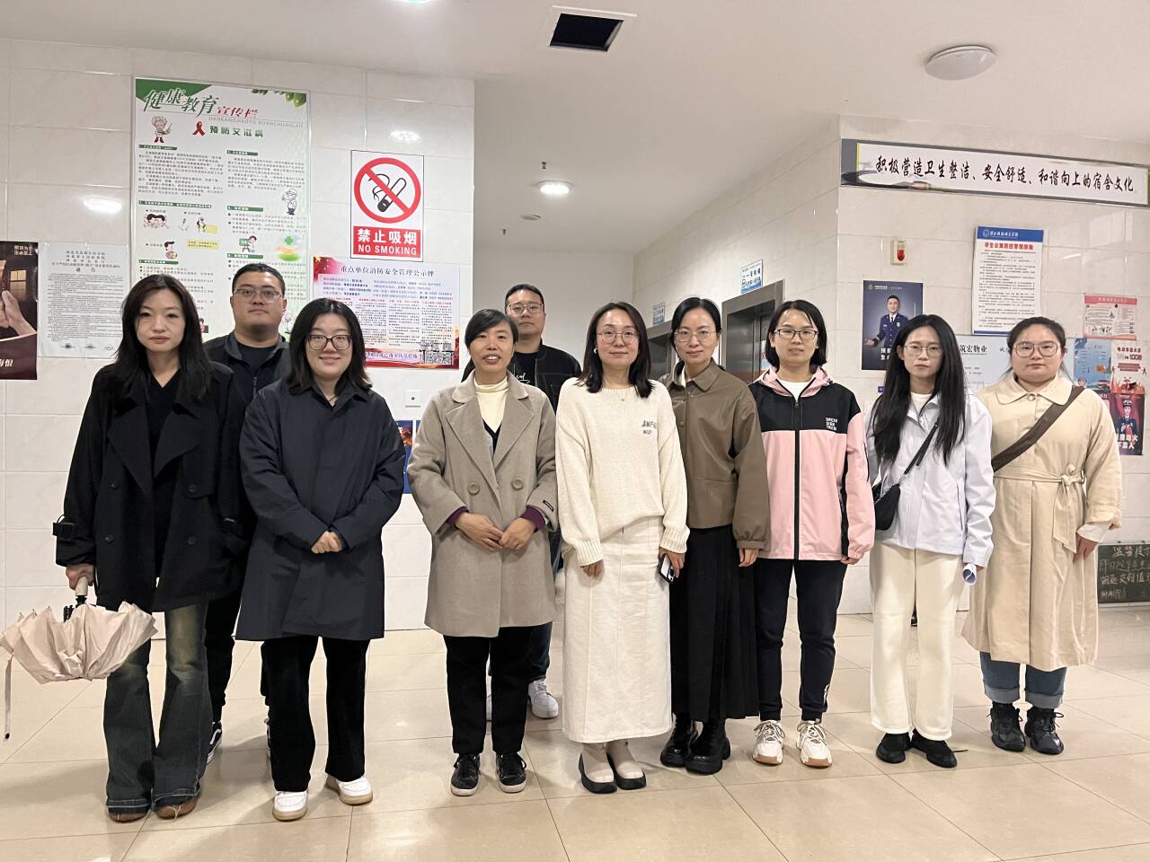 检查组检查A座学生宿舍楼