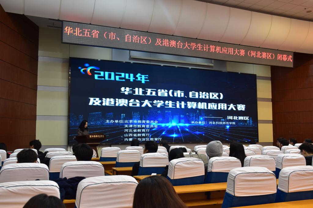 2024年11月17日,由河北省教育厅主办、河北科技师范学院承办的2024年华北五省(市、自治区)及港澳台大学生计算机应用大赛河北赛区竞赛在我校圆满落下帷幕。大赛分网络评审和现场答辩两个赛段进行,全省共有15所高校117个团队报名参赛。省内高校评审专家、参赛团队及指导教师参加了闭幕式暨颁奖仪式。