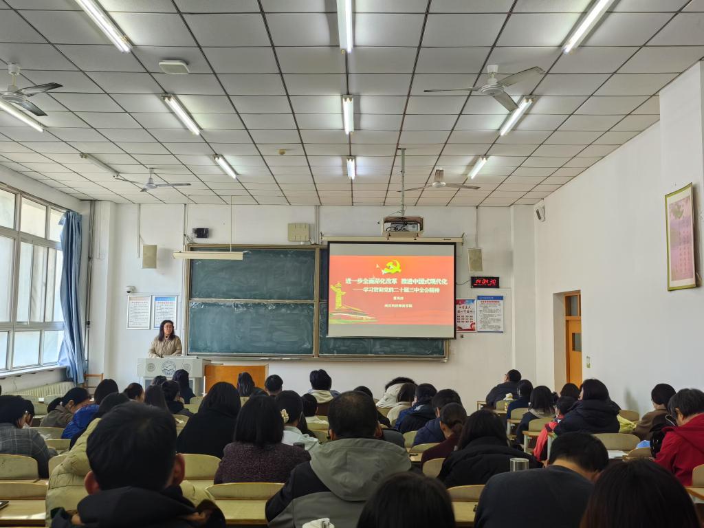 2024年11月21日,bat365官网登录入口党委邀请学校思想政治理论教育宣讲团成员、马克思主义学院曹凤珍博士为师生作党的二十届三中全会精神专题宣讲报告。宣讲会由学院党委书记杨崇泽主持。