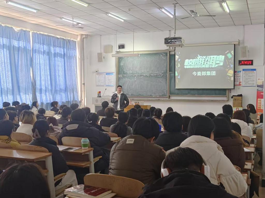 宣讲会中,集团饮品营销人资经理高兴隆通过企业宣传片、PPT展示详细介绍了公司概况、岗位需求、薪资待遇、晋升途径、报名方式等内容,使同学们充分了解集团的发展情况及人才培养体系。互动环节,学生们就发展前景、福利待遇等方面与招聘单位进行深度交流,招聘会现场气氛热烈。