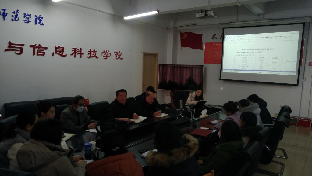 会上,赵立强院长首先对目前师范认证工作进行了总结,对寒假的认证工作做了动员。吕金凤院长详细布置了数学专业师范专业认证寒假工作安排,对申请书、自评报告及支撑材料、近三年课程文档的整理和完善工作提出了要求。